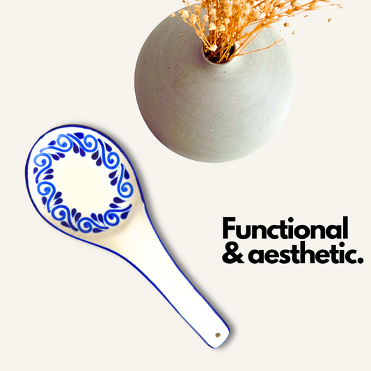 Blue and White Talavera Ceramic Spoon Rest